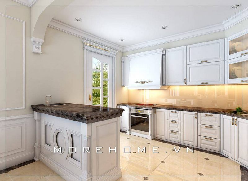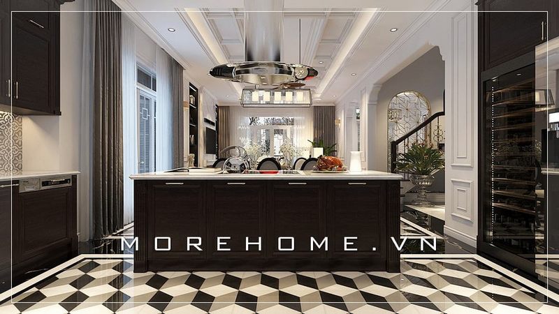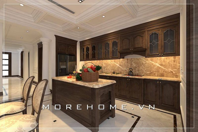 Thiết kế nội thất phòng bếp biệt thự tân cổ điển sang trọng và tiện nghi