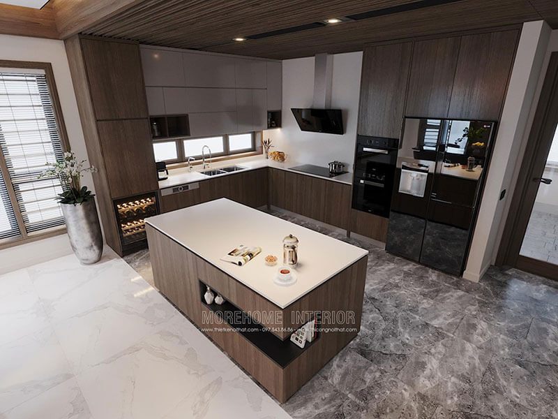 Thiết kế nội thất phòng bếp biệt thự phong cách hiện đại, trẻ trung và tiện nghi