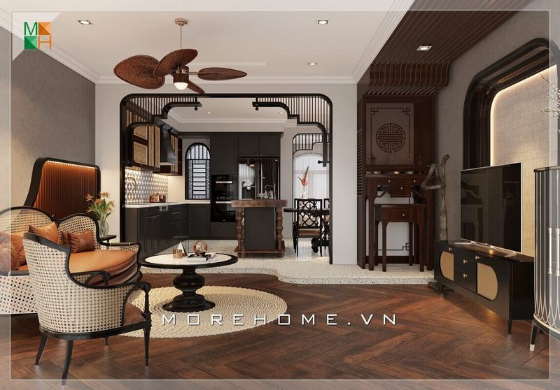 Ấn tượng với mẫu thiết kế nội thất rất hiện đại của phong cách Đông Dương khá đơn giản nhưng vẫn toát lên sự tiện nghi vốn có của nó.