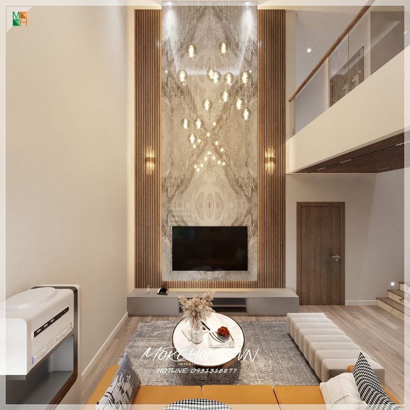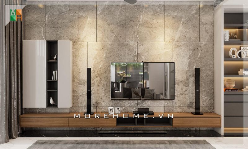 Mẫu kệ tivi ốp tường phòng khách độc đáo, hiện đại đem đến cảm giác sang trọng và tinh tế cho không gian tiếp khách