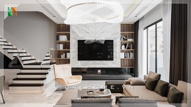 Sử dụng kệ ti vi cao cấp hiện đại màu trắng trang nhã tô thêm nét nổi bật của ngôi nhà