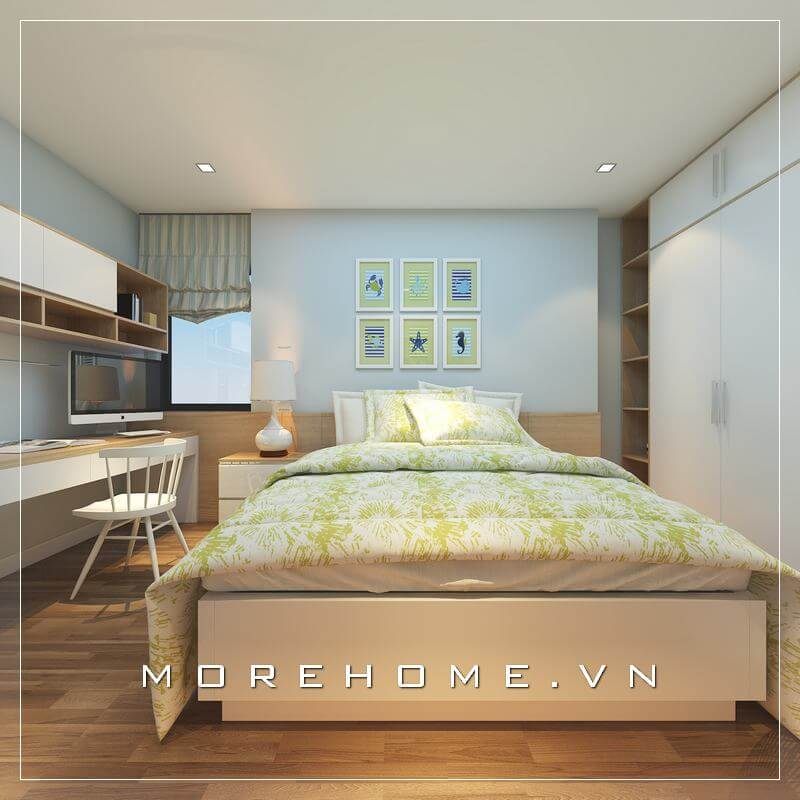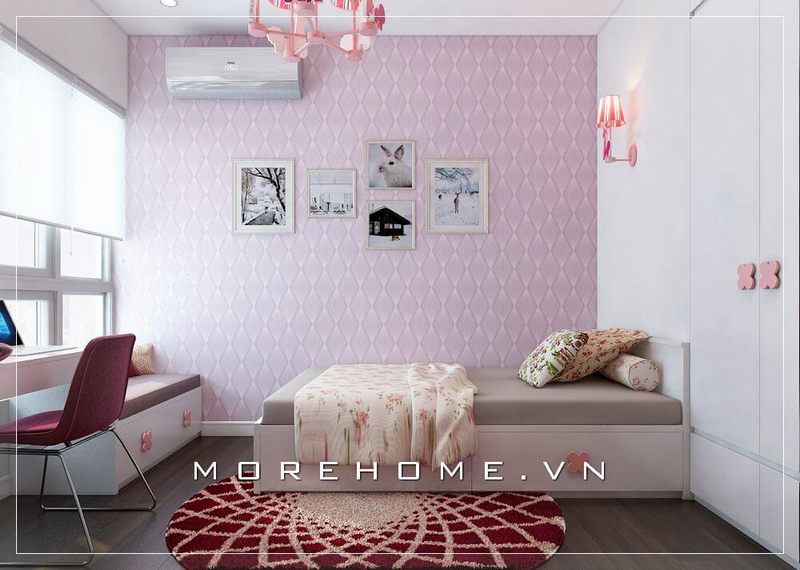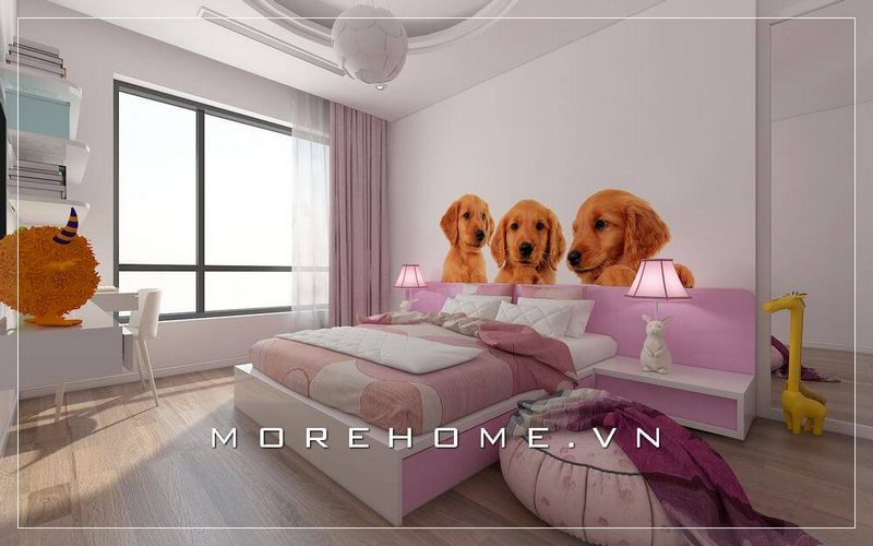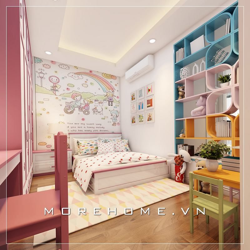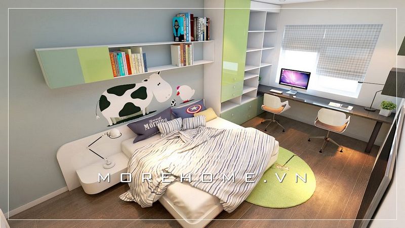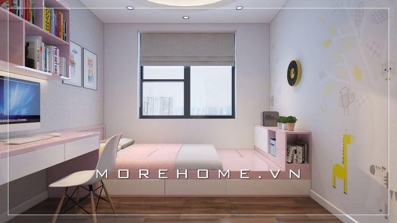 Giường ngủ gỗ công nghiệp với tone màu trắng chủ đạo tạo cho căn phòng của con thêm rộng thoáng hơn