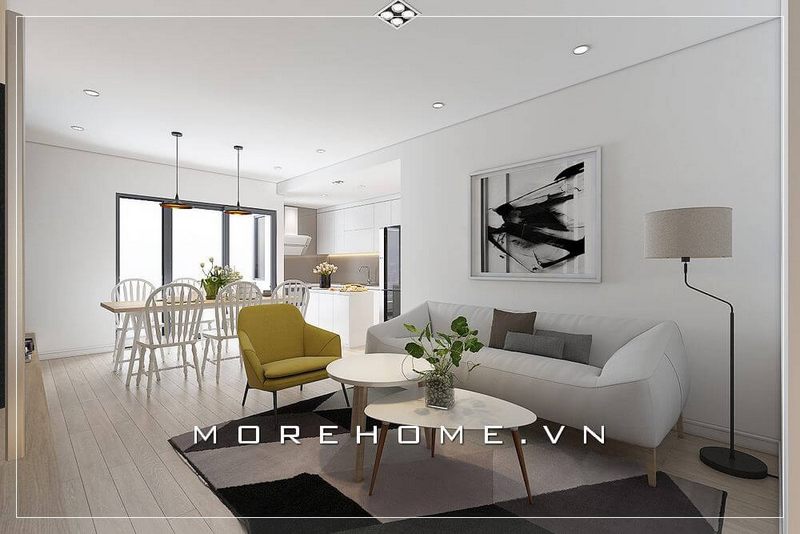 Bàn trà đóng vai trò là điểm nhấn giúp không gian căn phòng trở nên lịch sự thân thiện mỗi khi bước chân vào.