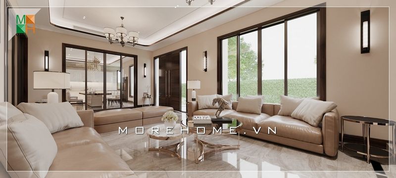 Thiết kế bàn trà gỗ óc chó đẹp luôn là điểm nhấn ấn tượng cho phòng khách biệt thự